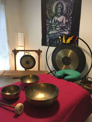 Es gibt verschiedene Optionen, mit den original tibetischen Klangschalen zu arbeiten.