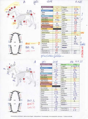 rate ich vor einer Tierkommunikation immer zu einer Vitalfeld-Analyse, damit man vorab bereits besser erfassen kann, wo ggf. schon deutlich sichtbare Probleme vorhanden sind. So muss dann das Tier in einer Tierkommunikation auch nicht mehr extra dazu befragt werden, vor allem, weil sich viele Tiere diesbezüglich auch nicht immer so gut auskennen...
